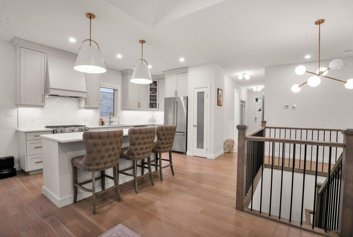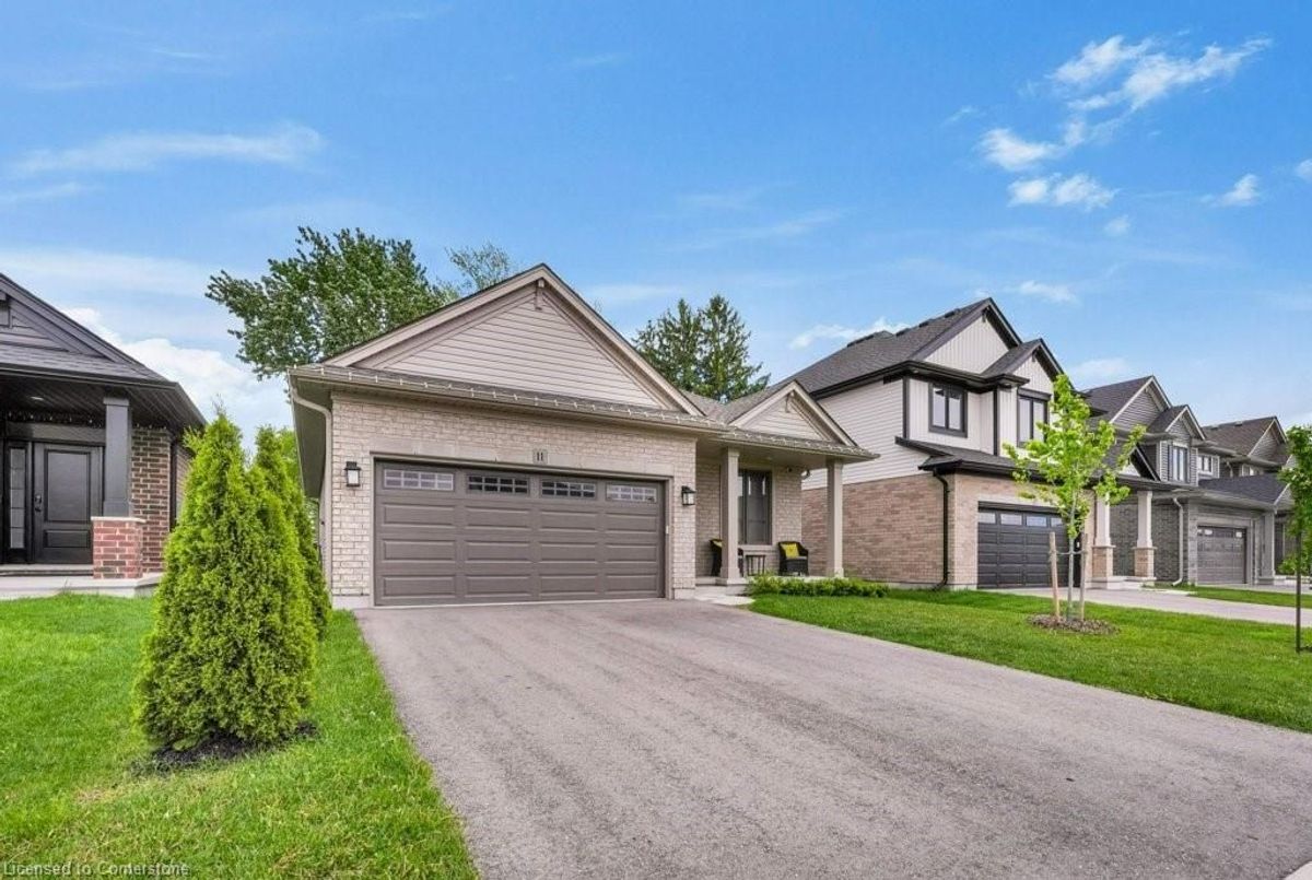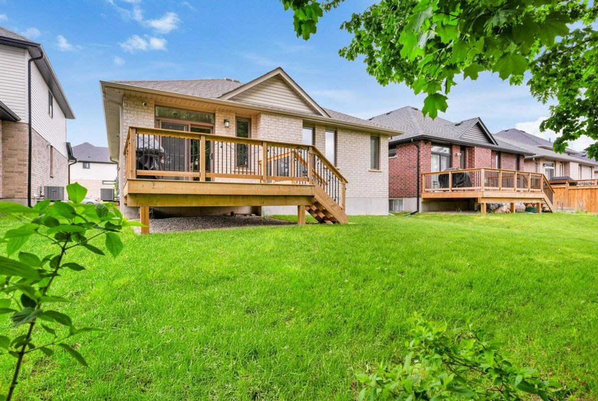 Prepare to fall in love with this Hayhoe-built bungalow, nestled in the welcoming town of Tillsonburg. Built in 2022, this thoughtfully designed home blends modern comfort with timeless style. With 3+2 bedrooms, 3 full baths, and a fully finished lower level, there's room here for every season of life. The kitchen is a true showpiece quartz countertops, gas stove, farmhouse sink, pantry, and a generous island under statement lighting make it perfect for both everyday living and entertaining. The open layout flows into the dinette and great room, complete with a cozy gas fireplace and walkout to the deck. Additional features include 9' ceilings, engineered hardwood, soft-close cabinetry, ceramic floors, reverse osmosis system, and gas hookups for the dryer and BBQ. The main-floor laundry adds convenience, while the front bedroom offers the ideal spot for a home office. Retreat to the Primary suite with its spacious walk-in closet and spa-inspired ensuite. Downstairs, the fully finished lower level is designed for fun and flexibility a rec room ready for movie nights or game day, two extra bedrooms, a full bath, and ample storage. Life in Tillsonburg offers the best of both worlds: small-town charm with excellent schools, shops, and cultural attractions, plus easy access to Hamilton, London, Woodstock, and Kitchener. This home is move-in ready, beautifully finished, and waiting for you. Come see how effortlessly your lifestyle will fit here.